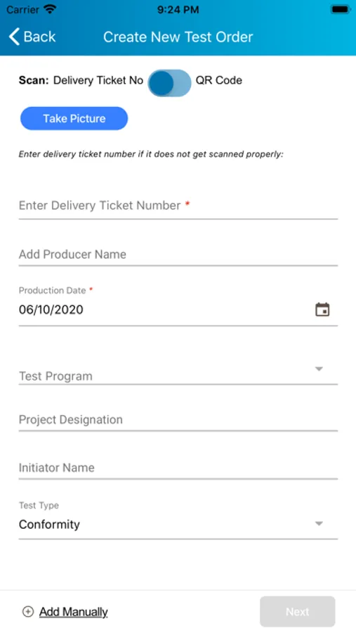 -Create draft test orders if delivery note information is not available yet.