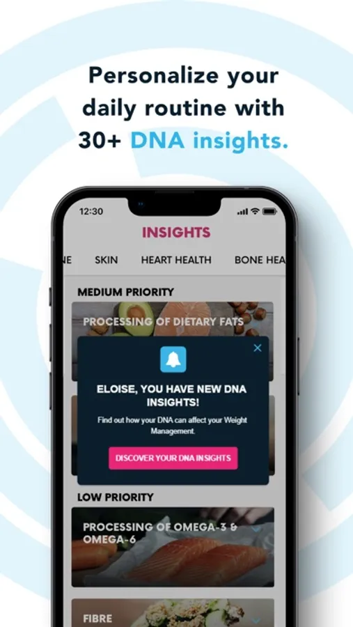 Personalise your daily routine with 30+ DNA insight reports covering fat burning, training styles, injury prevention, caffeine, sleep, B vitamins, heart health, weight regain, bone health + more.