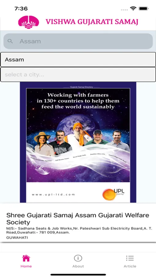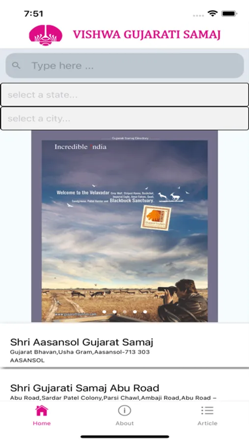 Application for the members of Vishwa Gujarati Samaj to access the directory of associated members
