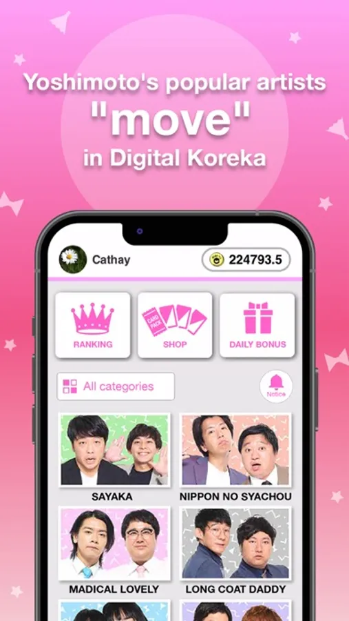 You will receive a Bonus Token once a day when you log in to the Yoshimoto Digital Koreka application. Bonus Tokens can be used for the drawing of Yoshimoto Koreka presents.