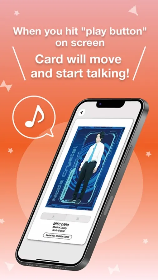 ● Press the play button on the screen and the card will move and start talking! You can enjoy the newly shot videos of the comedians that you can only see here.