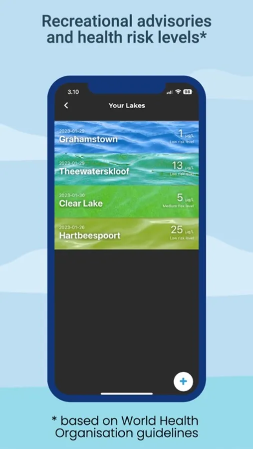 Access cyanobacteria health risk levels based on the World Health Organisation’s guidelines for any lake on earth* from satellite imagery.