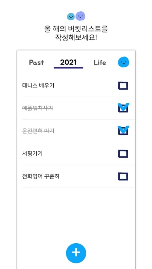 올해 이루고 싶은 버킷리스트를 기록하세요!
