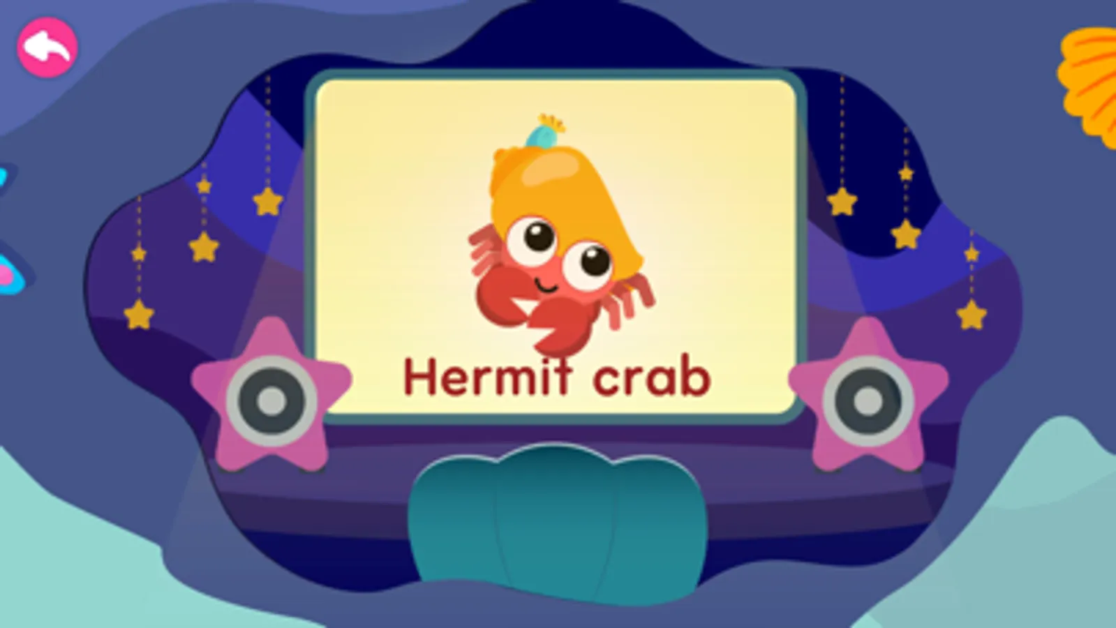 Help mini bot baby learn 10 sea animal names in the ocean with funny sound.