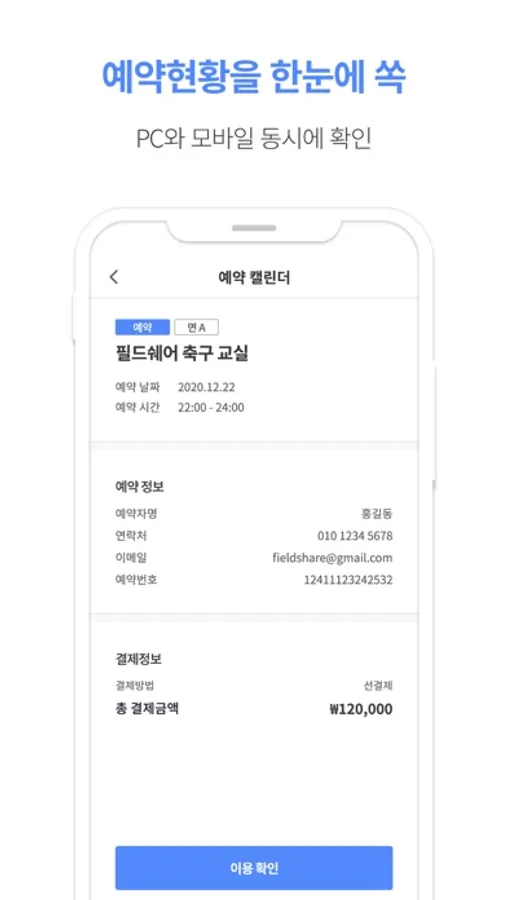 필드쉐어 제휴시설 사장님을 위한 예약관리 앱입니다.