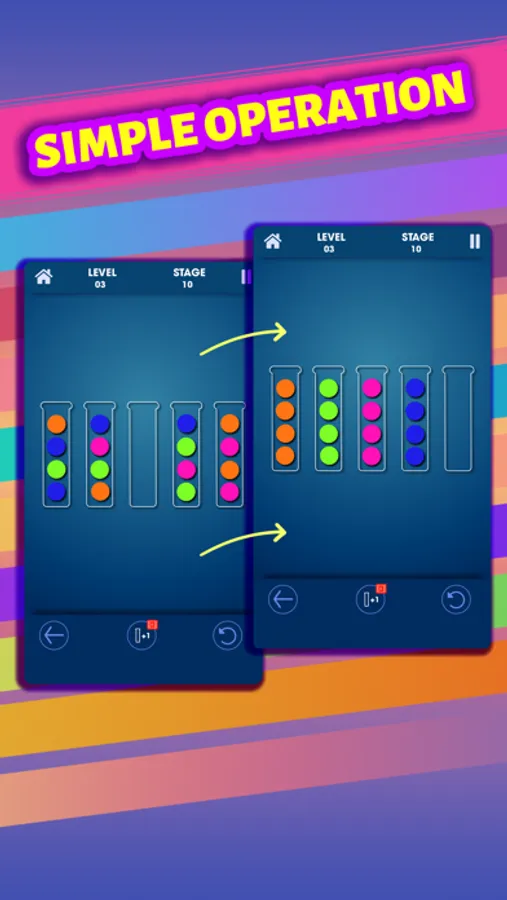Sort Colors is a unique puzzle game that's worth a try! You will be able to find joy through interesting brain problems. Colorful balls and many other surprises are waiting to be conquered! Show your wits by passing all of our levels. Let's play with friends to multiply fun, increase difficulty in each challenge!
