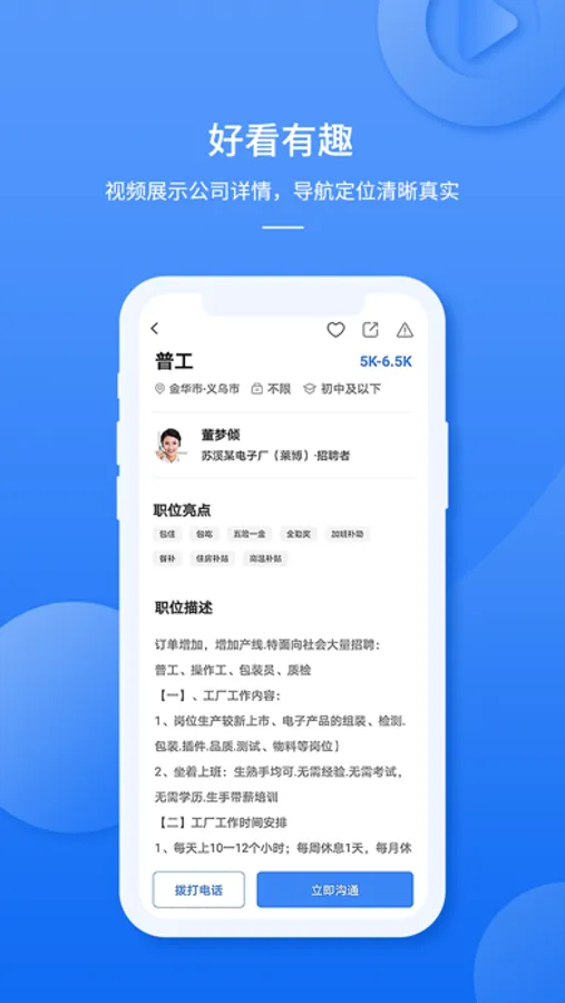 【快速联系】直接拨打岗位电话,也可聊天预约面试