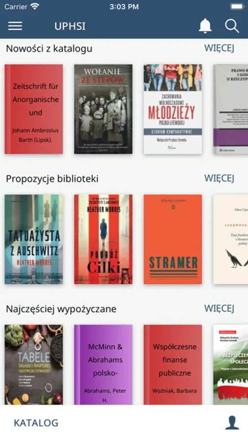 Aplikacja w pełni obsługuje katalog biblioteki oraz konto czytelnika biblioteki.