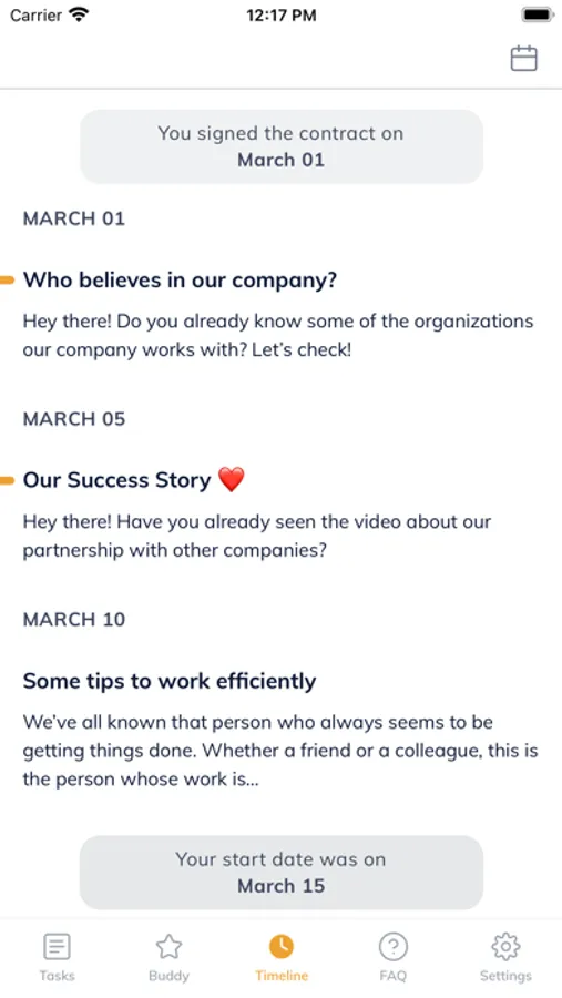 Automated engagement content delivered to the candidate during pre-boarding (before Day 1 with the company) to inform the future employee on most important happenings, show the culture of the company, and establish a cultural binding.