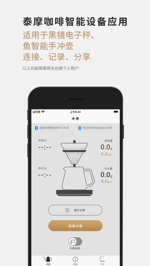 本应用适用于黑镜电子秤、鱼智能手冲壶的连接、数据记录、数据分享。