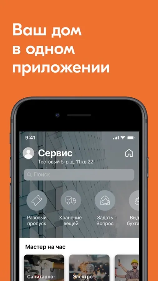 - Вызывать мастера, следить за статусом заявки, общаться в чате и оценивать качество работы;