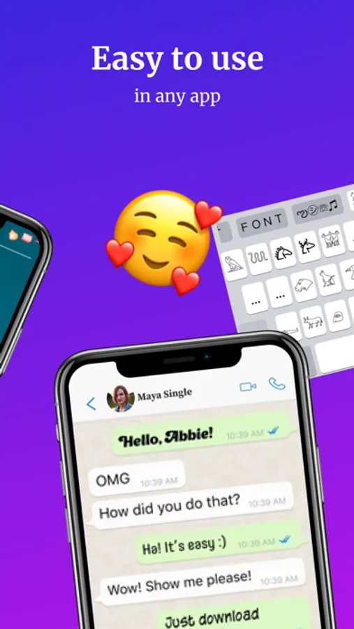 You can use custom amazing fonts in your emails, text messages, Instagram, Snapchat, Tik Tok, Facebook, contacts and anywhere you can enter text!