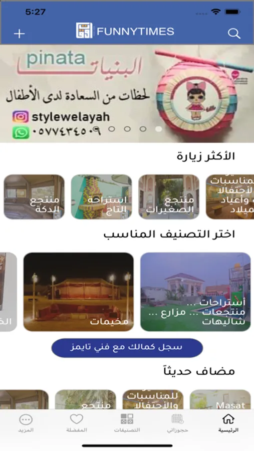 منصة إلكترونية وتطبيق للهواتف الذكية يقدم خدمة حجز الاستراحات وملاعب كرة القدم وصالات الأفراح اون لاين وتقديم افضل الخدمات والتسويق في كافة المجالات وعبر وسائل التواصل الإلكتروني من خلال تقديم افضل الخدمات لعملائنا حرصا منا على تحقيق رؤية المملكة 2030 وذلك دعما للسياحة المحلية التي هي محل اهتمام القيادة الرشيدة