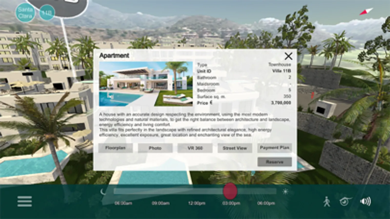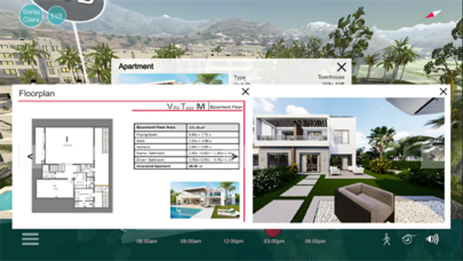 Interactive 3D Masterplan Application is a tool that helps salespeople in the real estate industry to showcase properties to their customers in person or remotely. The application offers extensive functionality, including search by name, location, cost, area size, availability of residential property and other important features.