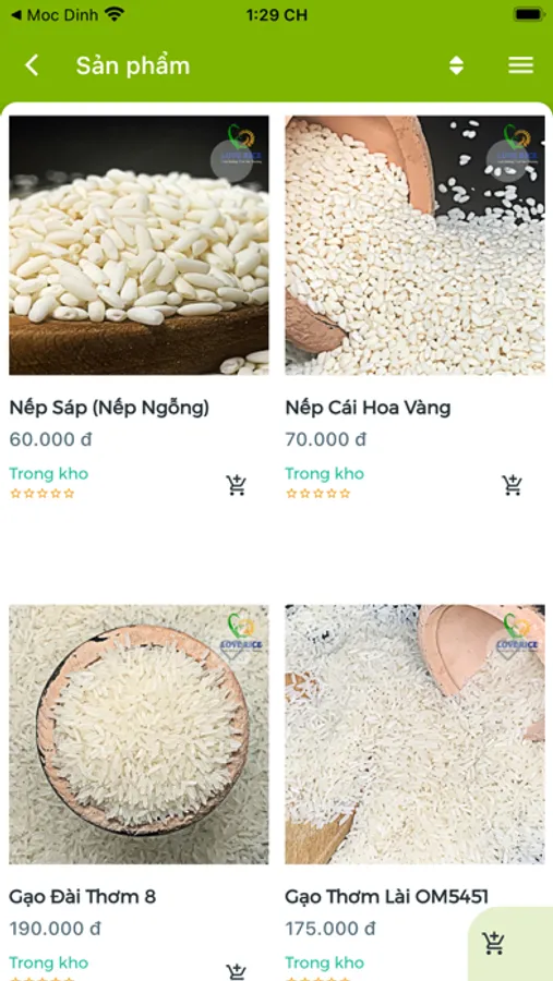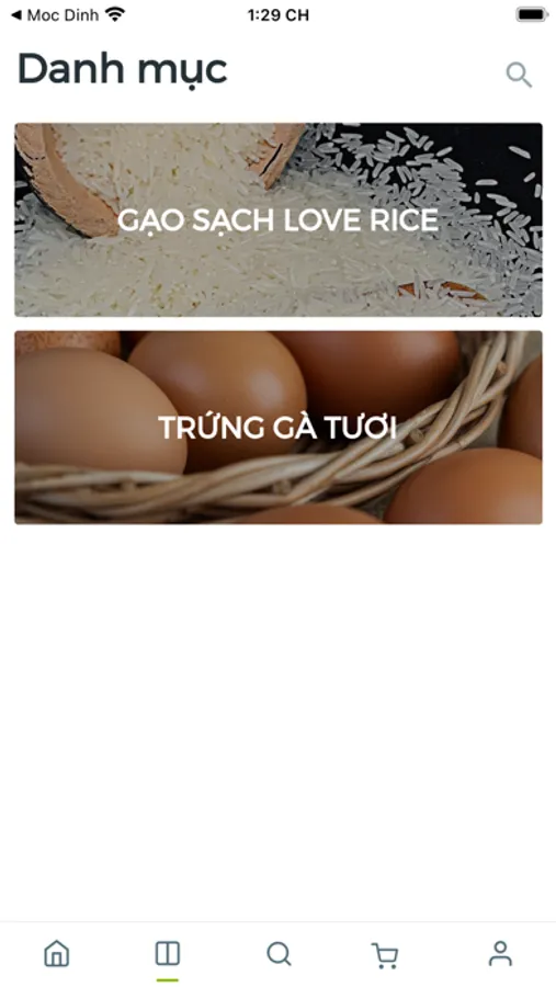 Bao gồm 2 danh mục tiêu biểu: Gạo sạch Love Rice và Trứng gà tươi. Trong danh mục Gạo sạch Love Rice bao gồm rất nhiều loại gạo, bạn có thể lựa chọn loại gạo phù hợp với mình.