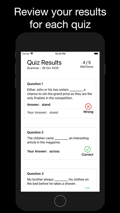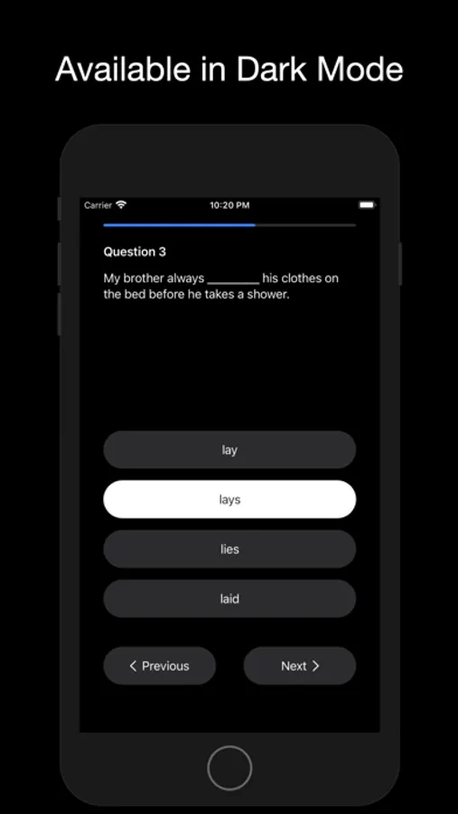 7. Reduce Eye Strain - Grammar 6 works on both Light Mode and Dark Mode. It uses Dynamic Text and automatically adjusts in size based on your system Text Size setting. Students can practise more questions without straining their eyes.
