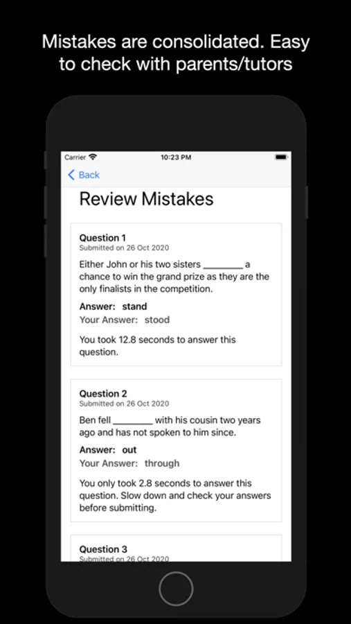 4. Saves Time - Why waste time referring to the answer key when Grammar 6 can do the marking for you? Mistakes are also consolidated for easy revision. Parents/Tutors can then focus on the weaker areas and provide more guidance as needed.