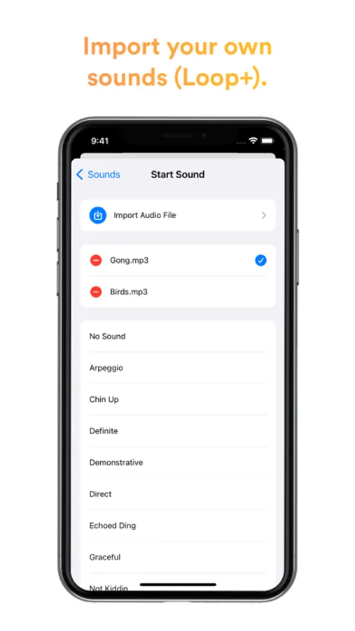 14 nice sounds are included with the app. You can select or disable Start, Finish, Reset and In-Between/Additional Sound (more on that below) individually.