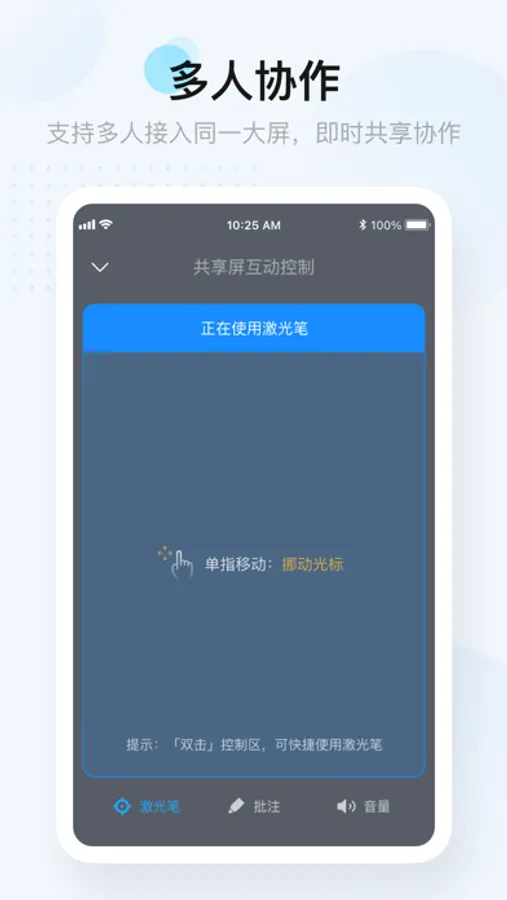 支持多人接入同一大屏,支持批注、激光笔、弹幕、发表情等多款工具即时共享协作。