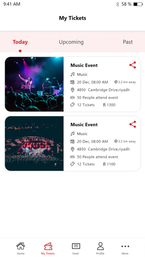 -Tickets are saved on My Tickets tab and categorized Today, Upcoming and Past