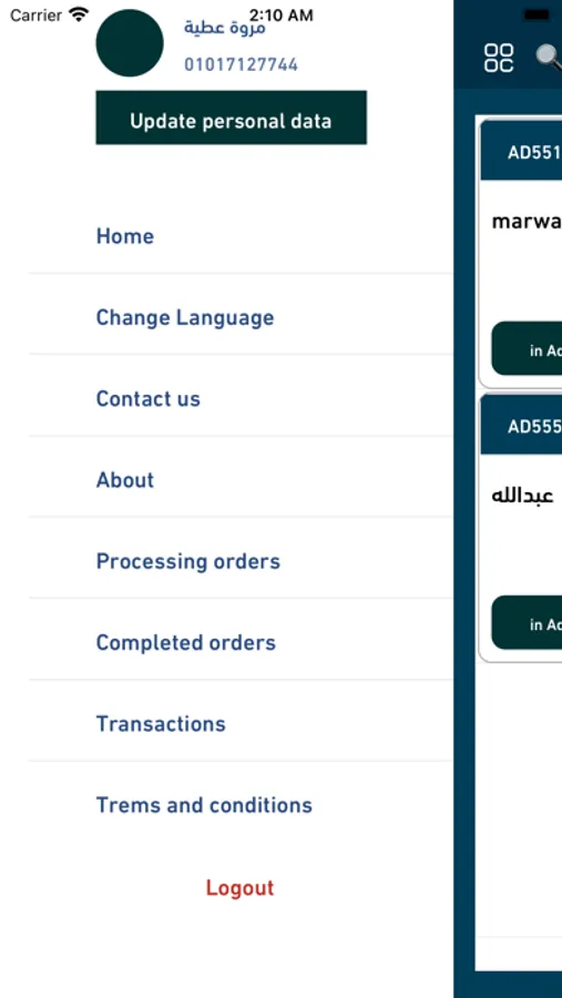 كما يمكن العميل من تتبع الشحنة إبتدا ً من المستودع و مرورا بالمندوب حتى تصل إلى المستلم النهائي . و يمكن التطبيق للعميل الاطلاع على جميع العمليات الخاصة به و الفواتير و طلبات الشراء و مشاهدة مراحل التوصيل و ما هو مسترجع و سبب الاسترجاع