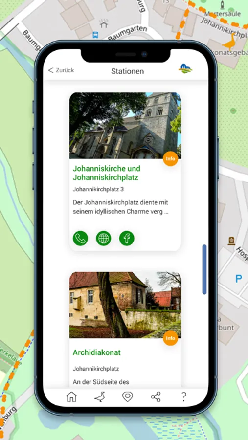 In 10 Stationen lernen Sie interaktiv die wichtigsten Sehenswürdigkeiten des Billerbecker Stadtkerns kennen. Auf dem Weg erhalten Sie immer wieder Informationen zu besonders interessanten Punkten. Weiteres Highlight: Fantastische 360°-Aufnahmen der Innenräume von Ludgerusdom, Johanniskirche und Kolvenburg. Eine Stadtkarte mit der Route und markierte Gänsespuren auf Ihrem Weg geben Ihnen zusätzliche Orientierung.