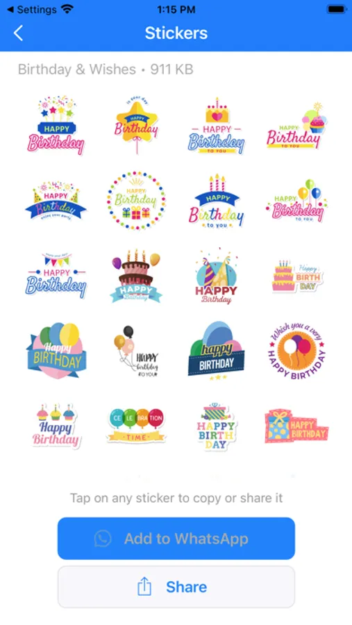 • 50 + Stickers Pack. A list of Stickers Pack that you can send to birthday people.