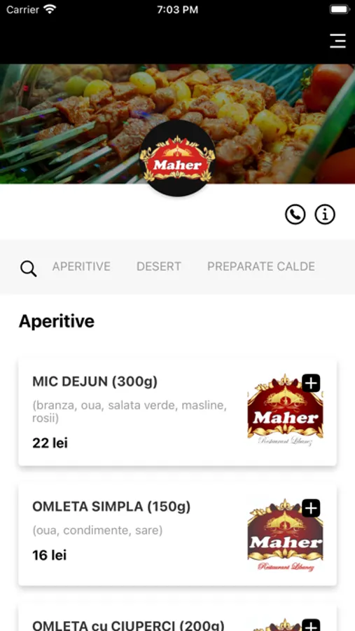 Daca la urmatoarea iesire in oras vrei sa incerci tot ce este mai bun din bucataria arabeasca, iti spunem doar atat: vino la Maher, ai de unde alege! Veţi fi uimiţi de ospitalitatea care, de altfel, face parte din cultura acestui popor, de feluri renumite de mancare.