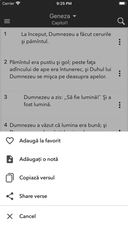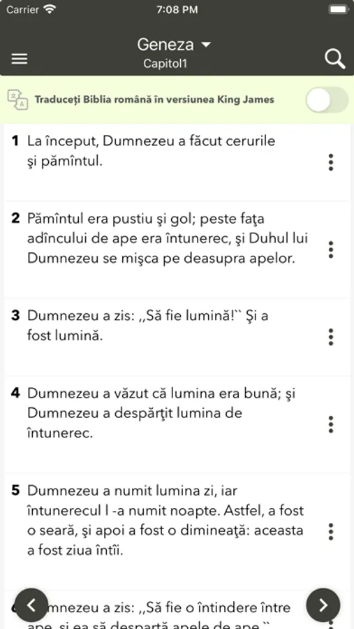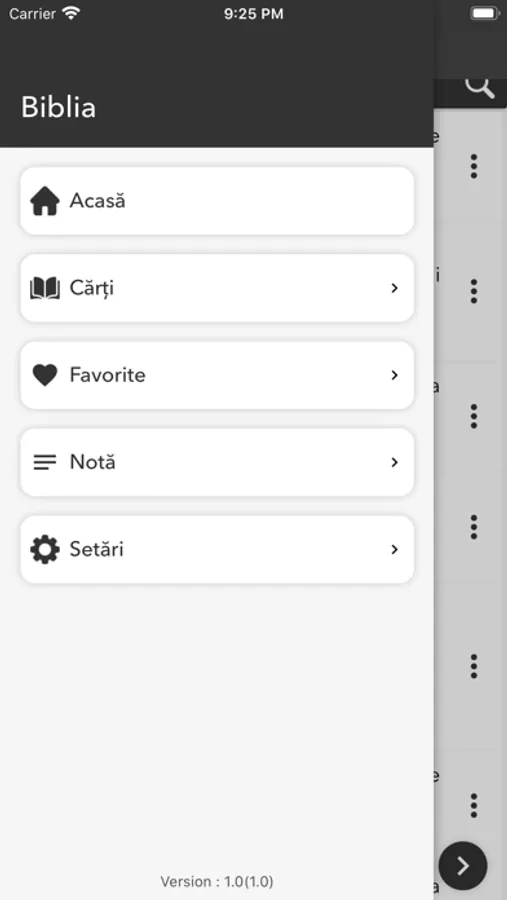 Biblia românească are o interfață foarte ușor de utilizat, care vă va permite să citiți Biblia din roman în orice moment și să vă hrăniți sufletul cu versetele sale frumoase și învățăturile Domnului nostru Isus. Puteți citi pe telefonul dvs. mobil oricând și puteți împărtăși Sfintele Scripturi cu oricine doriți. Biblia nu are nevoie de o conexiune la Internet pentru a citi.