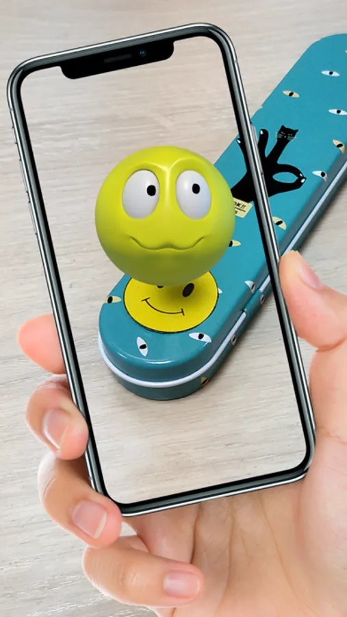 Приложение с дополненной реальностью (AR). Меткой является наклейка смайлик. Пользователь наклеивает смайлик на любую плоскость. Затем, устанавливает на свой телефон с приложение "My Smile", запускает его, наводит на наклейку и получает игровую анимированную сцену дополненной реальности (AR).