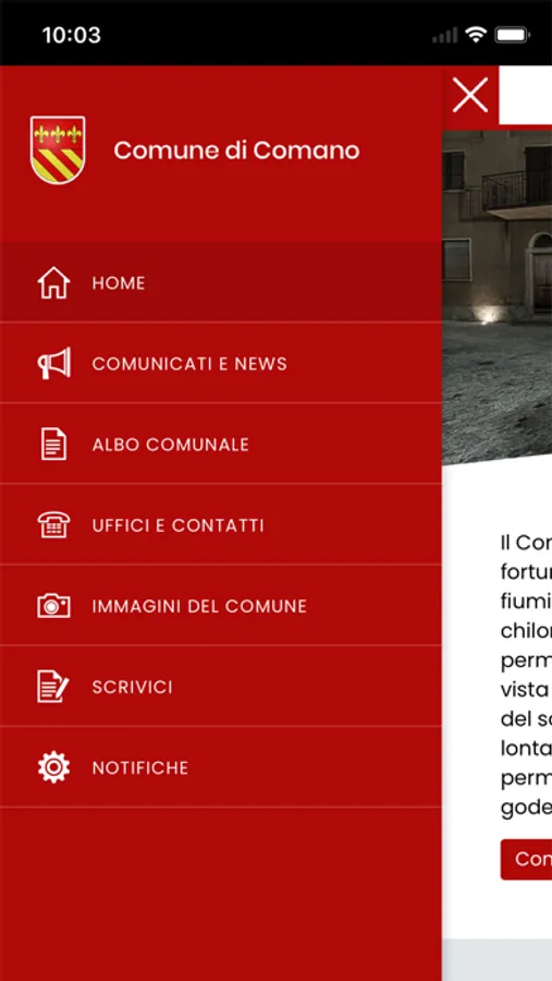 Utilizzando questa applicazione potrete consultare le seguenti sezioni: