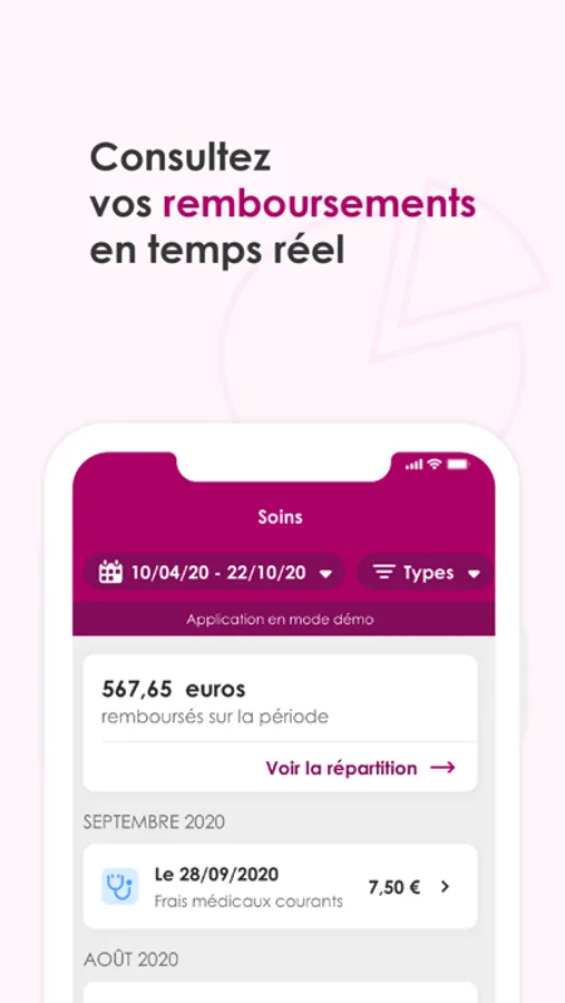 - Consultation des derniers remboursements de soins de santé