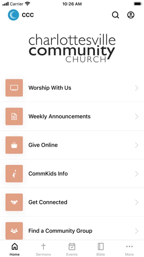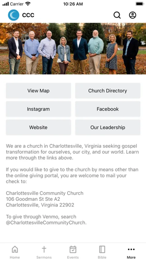 This app will help you stay connected with the day-to-day life of Charlottesville Community Church, a church seeking gospel transformation for ourselves, our city, and our world. With this app you can: