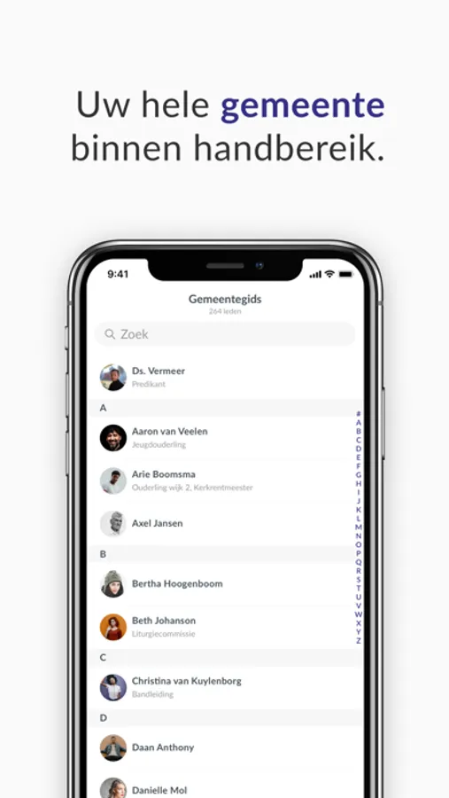 Wie zoekt er tegenwoordig nog een telefoonnummer op in het telefoonboek? Vrijwel niemand! Dankzij de gemeentegids feature is iedereen binnen uw kerkelijke gemeente terug te vinden. Snel berichten sturen, naar een adres navigeren of zien wat iemands rol in de kerk is? Met de digitale gemeentegids wordt het makkelijk.