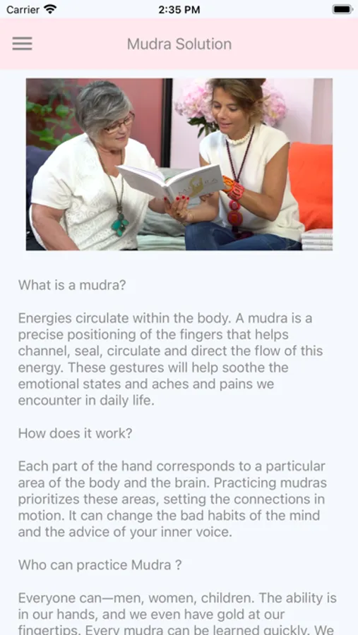 Mudra Solution is an app designed as a first-aid kit to help you soothe the emotional states and aches and pains you encounter in daily life. A Mudra is a precise positioning of the fingers that helps channel, seal, circulate and direct the flow of this energy. Each part of the hand corresponds to a particular area of the body and the brain. Practicing mudras prioritizes these areas, setting the connections in motion. It can change the bad habits of the mind and the advice of your inner voice. The ability is in our hands and you have gold at your fingertips. Every mudra can be learned quickly. There are no specific instructions to follow. Each person will experience the benefits differently. It could take a few seconds or several minutes. It could be subtle, powerful, or both. Only the person practicing the mudra will know.