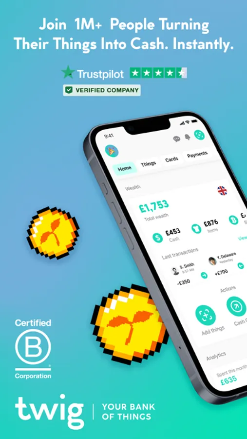 Sign up and list your items in less than 30 seconds. Sell by taking a photo of your items. Once you upload, you will receive an instant valuation. Twig banking* services provide a simple and easy platform to make money from your home in just a few taps.