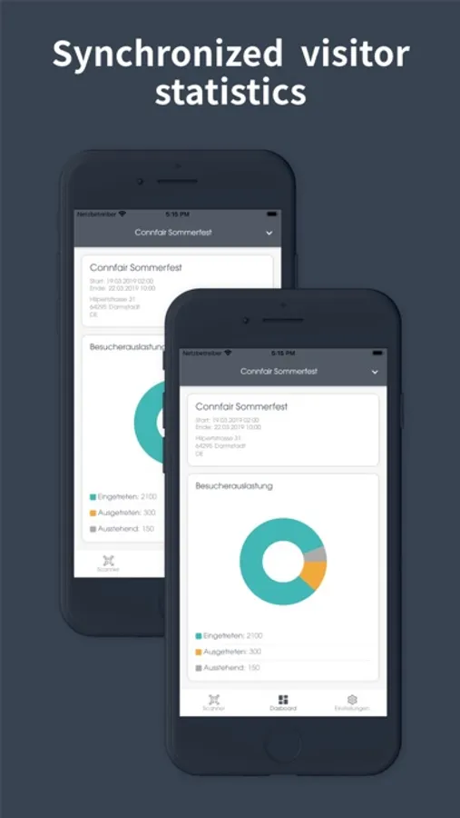 Connfair Admin App is also used for admission control. Scan tickets via QR code for smooth entry and exit control. If desired, even fully automatic without touching the screen!