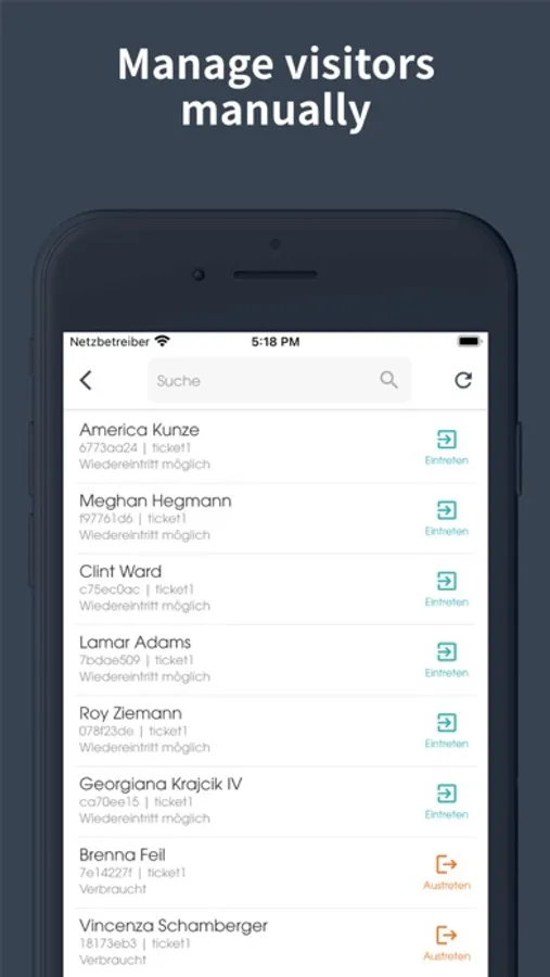 • Admission Control: Easily scan tickets with the camera for validation. A fluent scanning progress allows a very fast entrance rate. Alternatively, it is possible to manage the entry control manually without using the camera.
