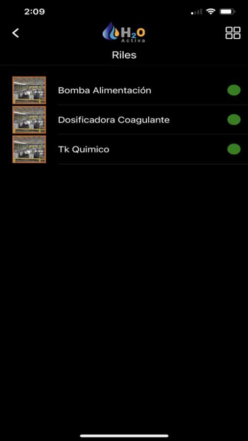 Aplicación que permite llevar el detalle del estado de cada equipo y parámetro en equipamiento de tratamiento de aguas provisto por h2oactiva