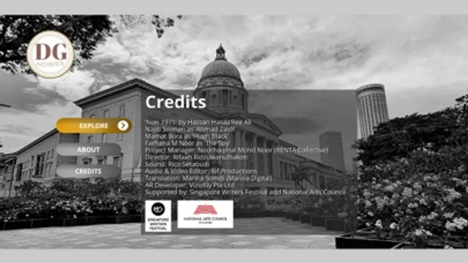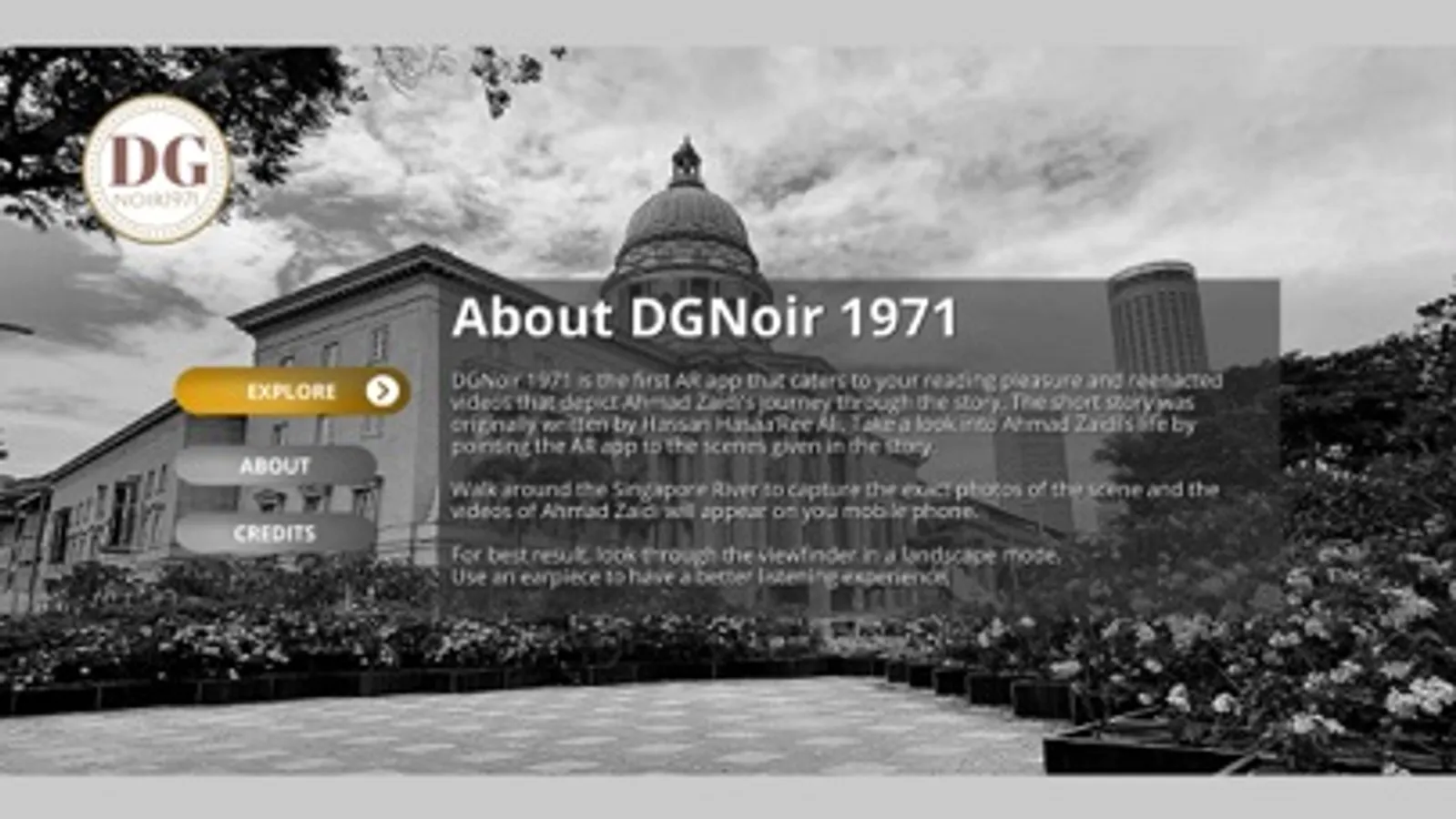 DGNoir 1971 is an AR-capable mobile phone application, based on the short story titled ‘Noir 1971’ by Hassan Hasaa’Ree Ali. Users will be able to read the story and experience the story further when they take certain images of locations around the modern-day Singapore River. These images will turn into videos that will show Ahmad Zaidi, the protagonist, uncovering the mystery of an object he received from a stranger.