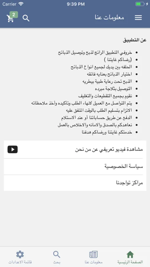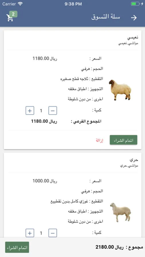 تطبيق خروفي لذبح وتوصيل الذبائح. هناك قائمة بجميع انواع المواشي اختر ذبيحتك وطريقه تجهيزها وتقطيعها وسوف يتم التواصل بك هاتفيا لتاكيد الطلب ثم توصليها الى موقعك والدفع عند استلام الطلب.