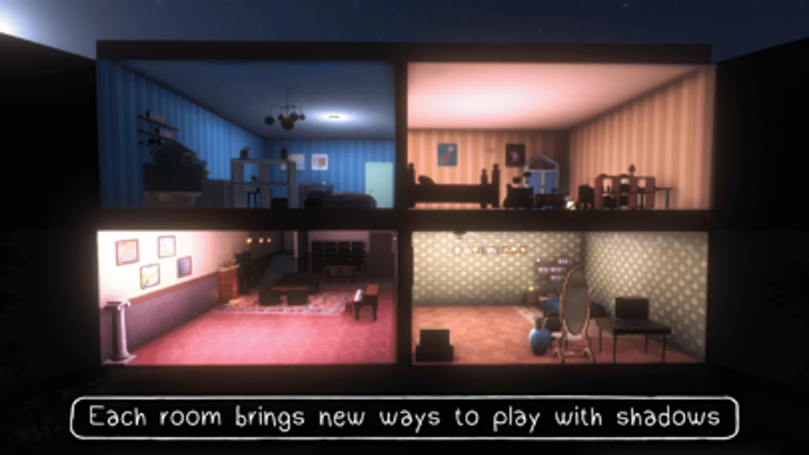 The game tells the story of Bella,a young woman who had a fallout with her family years ago and now finds herself struggling to respond to her father’s text message. Her childhood memories come to life as shadows on the wall of her house, and you must use those shadows to solve unique puzzles and help Bella try to let go of her past.