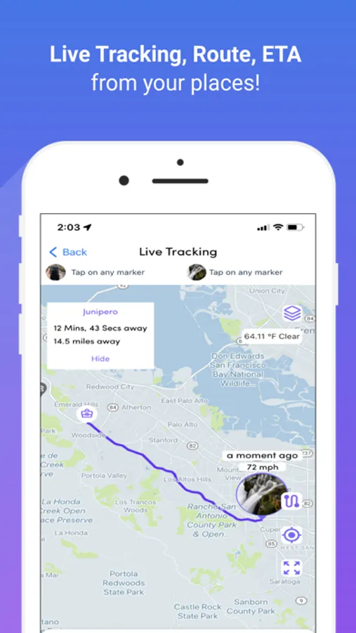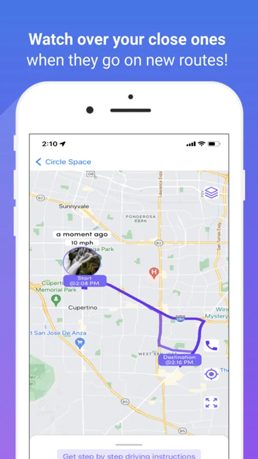 Get estimated arrival time for circle members at your location on the circle map by tapping on where everyone is.