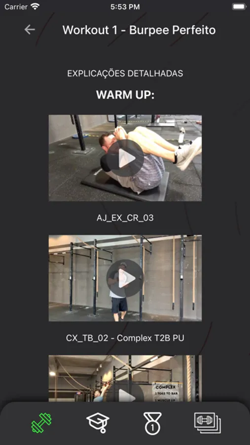 O Aplicativo do RX54 é a união entre anos de conhecimento na área de atividade física e a Tecnologia. Com ele você vai aprender de uma forma rápida e segura os principais movimentos desenvolvidos dentro dos BOX, Sejam eles ginásticos, de endurece ou LPO. Todos os movimentos possuem uma escada evolutiva que te guia passo a passo no desenvolvimento de todas as capacidades físicas necessárias para a execução daquele movimento, são dezenas de vídeos organizados na ordem perfeita para que você realize o movimento da maneira mais rápida e consistente possível.