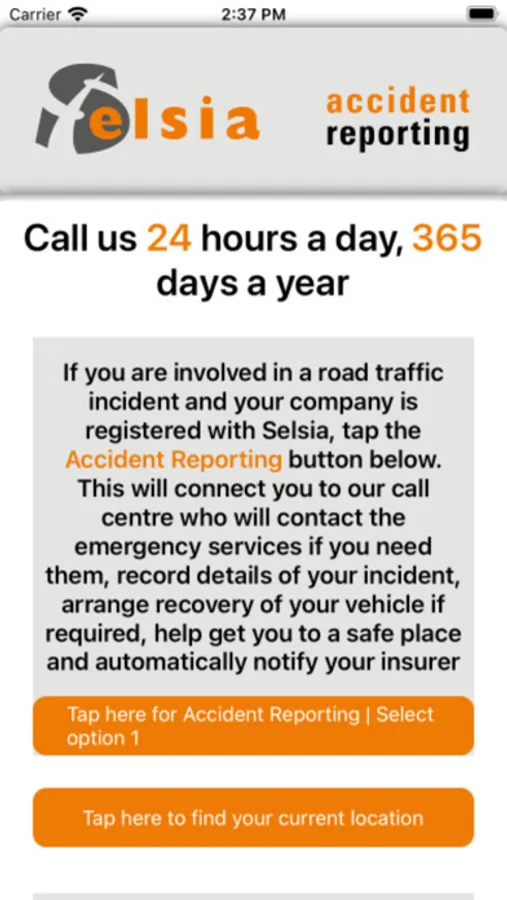 Selsia’s Accident Reporting app is for employees of companies who have contracted for Selsia to manage the recovery and accident repair of their fleet. It connects to 24 hour claim reporting and recovery assistance, the location of where the caller is, access to repair progress updates and helpful suggestions. It will be of no use to those who’s employer has not signed an agreement.