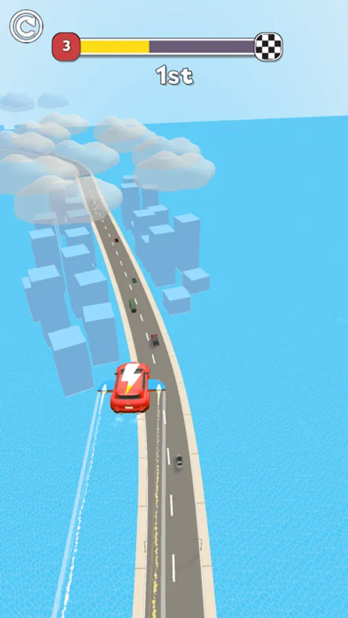 Overtake cars with tap and hold to reach the finish. Release to avoid hitting oncoming cars.
