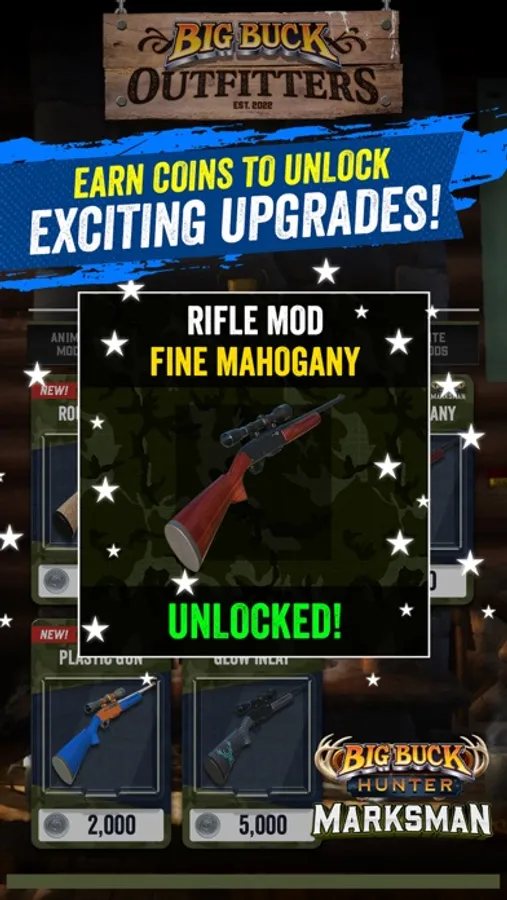 - You will earn coins based upon your success. Spend your coins at the Big Buck Outfitters store to unlock in-game upgrades!