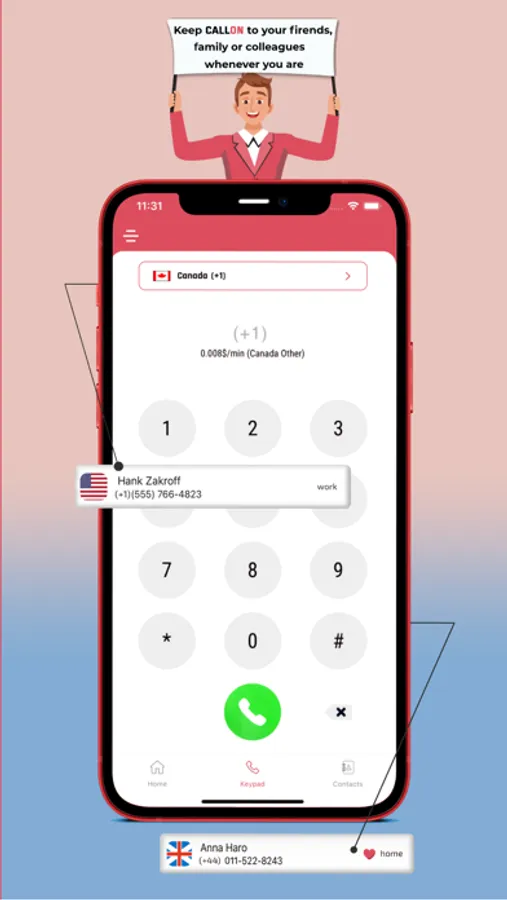 • Download CallOn app and enjoy cheap global calls to any mobile and landline.
