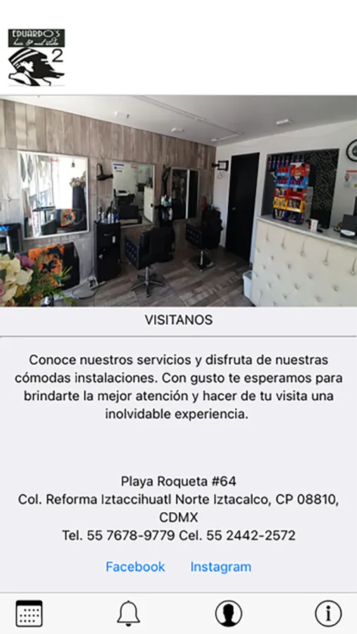 Podrás agendar directamente citas en Eduard2 Salon, podrás cancelar citas y consultar información importante del salon.