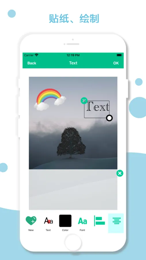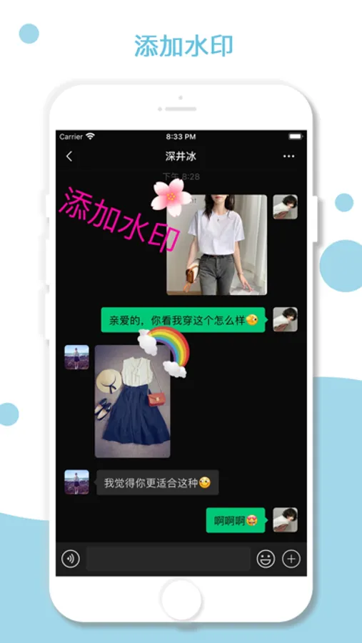【添加水印】添加文字水印,贴纸水印,防止恶意使用。随意定制水印效果。